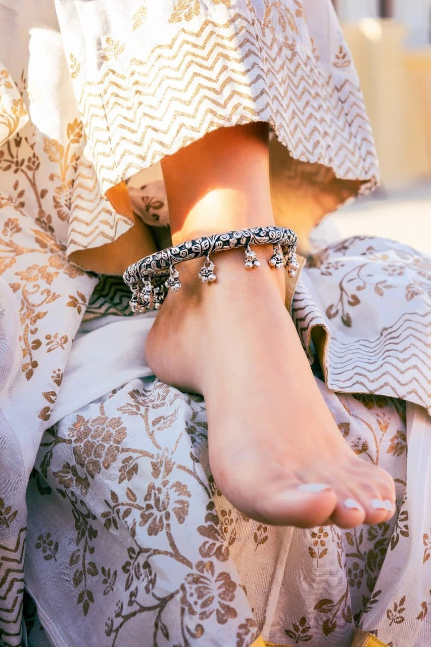 Celebrate tradition with elegance – this Silver Leg Kada for Women features charming ghungroo accents that create a delightful tinkling sound with every step. Crafted in 925 sterling silver, the kada combines durability with timeless ethnic style, making it a perfect accessory for weddings, festivals, and daily wear.