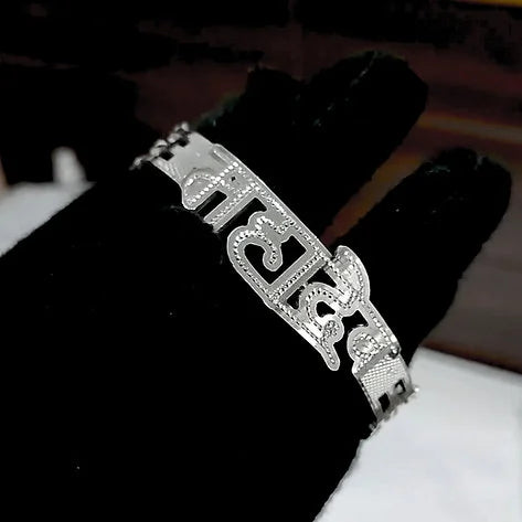 Weighing approx. 30 gms, this kada offers a sturdy yet comfortable fit, making it suitable for both daily wear and special occasions. Its shining silver surface combined with spiritual motifs makes it a perfect blend of faith and fashion.